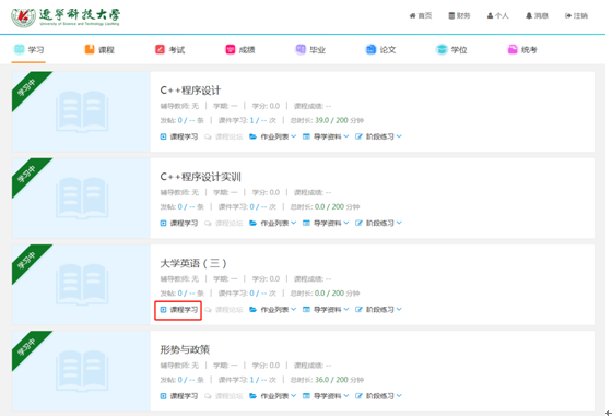 2、進(jìn)入課程學(xué)習(xí)之后, 選擇課件學(xué)習(xí)。