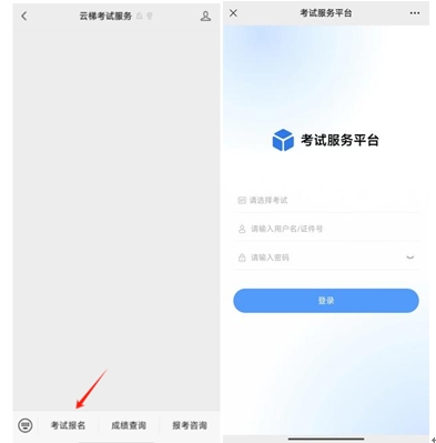 2、點擊考試報名,選擇對應(yīng)考試登錄賬號